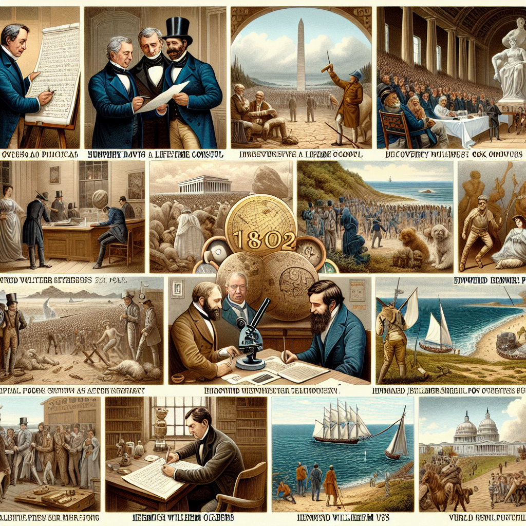 Disse begivenheder tegner et bredt billede af betydningsfulde øjeblikke i 1802 fra politiske ændringer til kulturelle og videnskabelige bidrag.