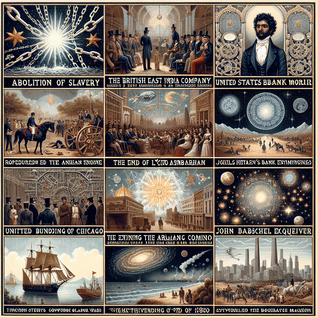 På den økonomiske front blev British East India Company’s monopol på handelen med Indien ophævet, hvilket åbnede dørene for øget konkurrence og kommercielle muligheder. Samtidig blev grundstenen for den blomstrende storby Chicago lagt i Illinois, USA.