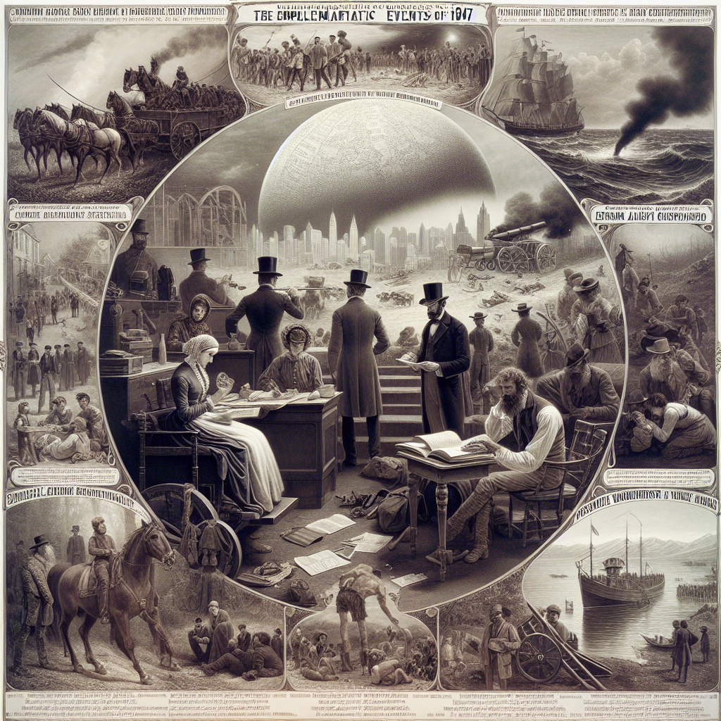 År 1847 var et bemærkelsesværdigt år med betydningsfulde begivenheder, der formede verdens historie. Kampe fortsatte i den Mexicansk-Amerikanske Krig, mens mormonerne ankom til Utah-territoriet for at undslippe forfølgelse. Den irske hungersnød rasede videre og forårsagede ekstrem nød og migration.