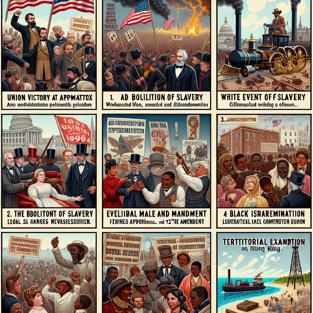 Den 13. ændring af den amerikanske forfatning blev ratificeret, og slaveriet blev endeligt afskaffet i hele USA. Dette markerede kulminationen på en lang og blodig konflikt mellem nordstaterne og sydstaterne, der havde kæmpet siden 1861. Unionens sejr ved Appomattox, hvor general Lee overgav sig til general Grant, satte punktum for krigens rædsler.