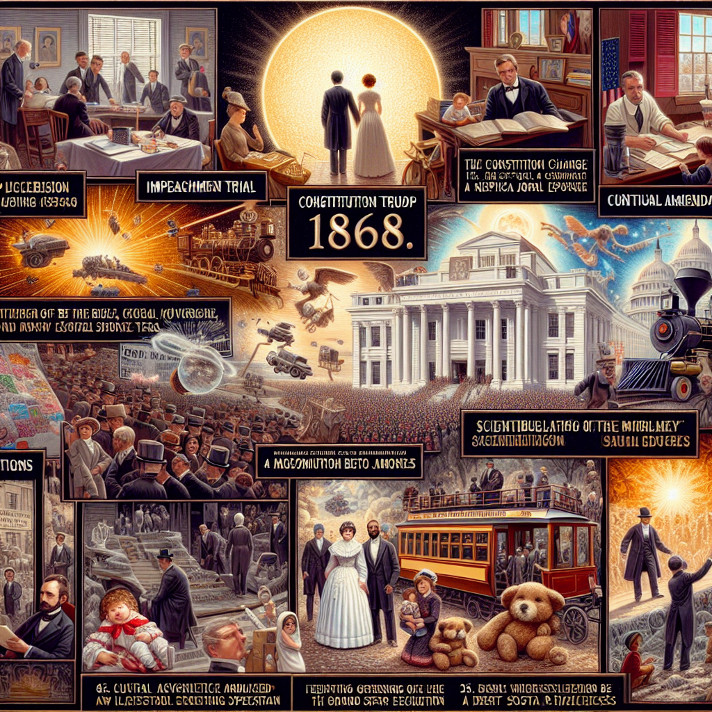 I USA blev præsident Andrew Johnson den første siddende præsident, der blev stillet for en rigsretssag, omend han ikke blev afsat. Nebraska blev desuden den 37. stat, der blev optaget i Unionen, mens Fjortende Tilføjelse til USA’s Forfatning sikrede lige borgerrettigheder for alle.