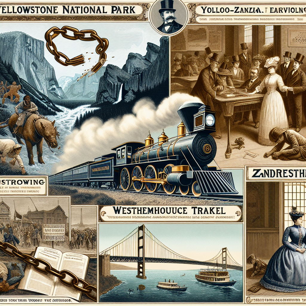 I året 1872 var flere vigtige begivenheder med til at forme vores moderne verden. I USA blev Yellowstone Nationalpark grundlagt som verdens første nationalpark den 1. marts, et skridt der banede vejen for at beskytte naturlige vidundere. Samtidig udviklede George Westinghouse sine revolutionerende luftbremser, der forbedrede sikkerheden på jernbanerne.