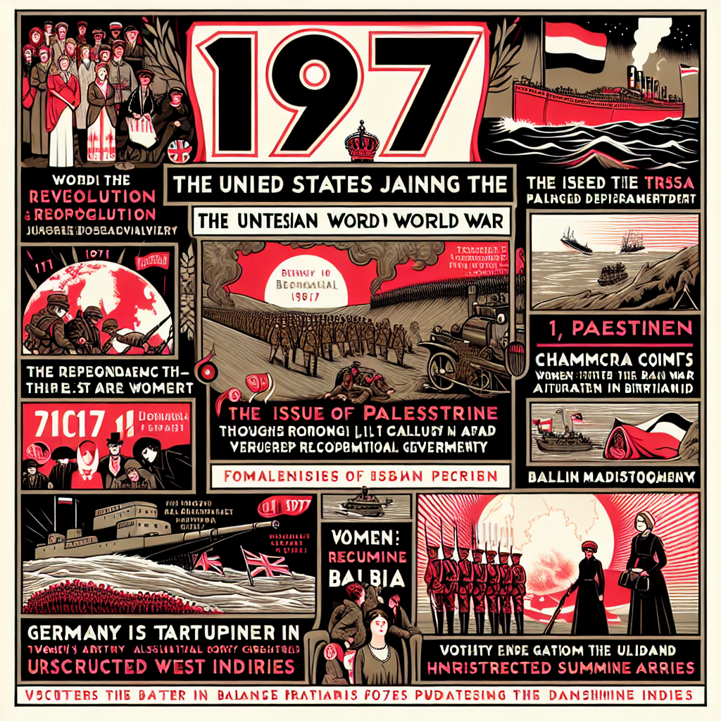 Året 1917 var også vidne til store naturkatastrofer som jordskælvet på Bali og vigtige skridt som Finlands uafhængighed fra Rusland og USA’s opkøb af de Dansk Vestindiske Øer. Samtidig var der fortsat konflikt mellem nationer, eksemplificeret ved den tyske deportation af belgiske arbejdere og de voldsomme kampe om Gaza.