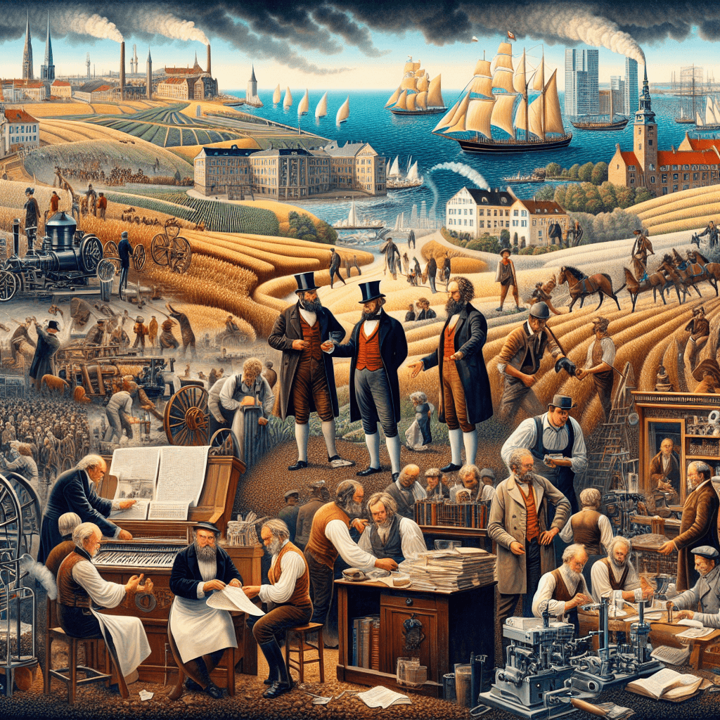 - Landbruget – fortsatte med at være rygraden i Danmarks økonomi, men var i en periode med gradvis overgang til mere moderne agrarteknikker.